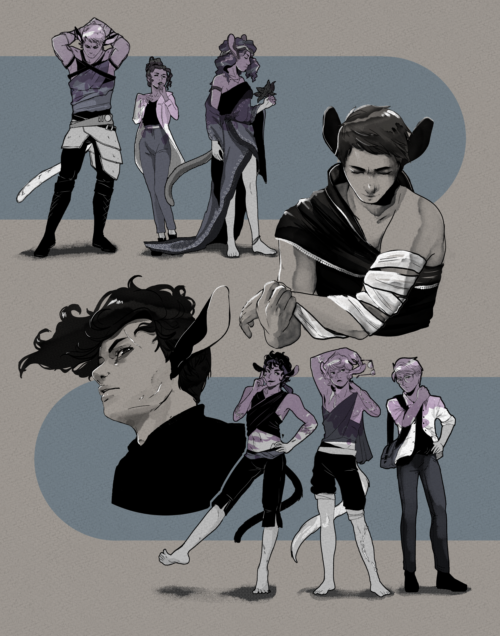 A collection of character art and concepts from Melded | Digital, 2023-2024